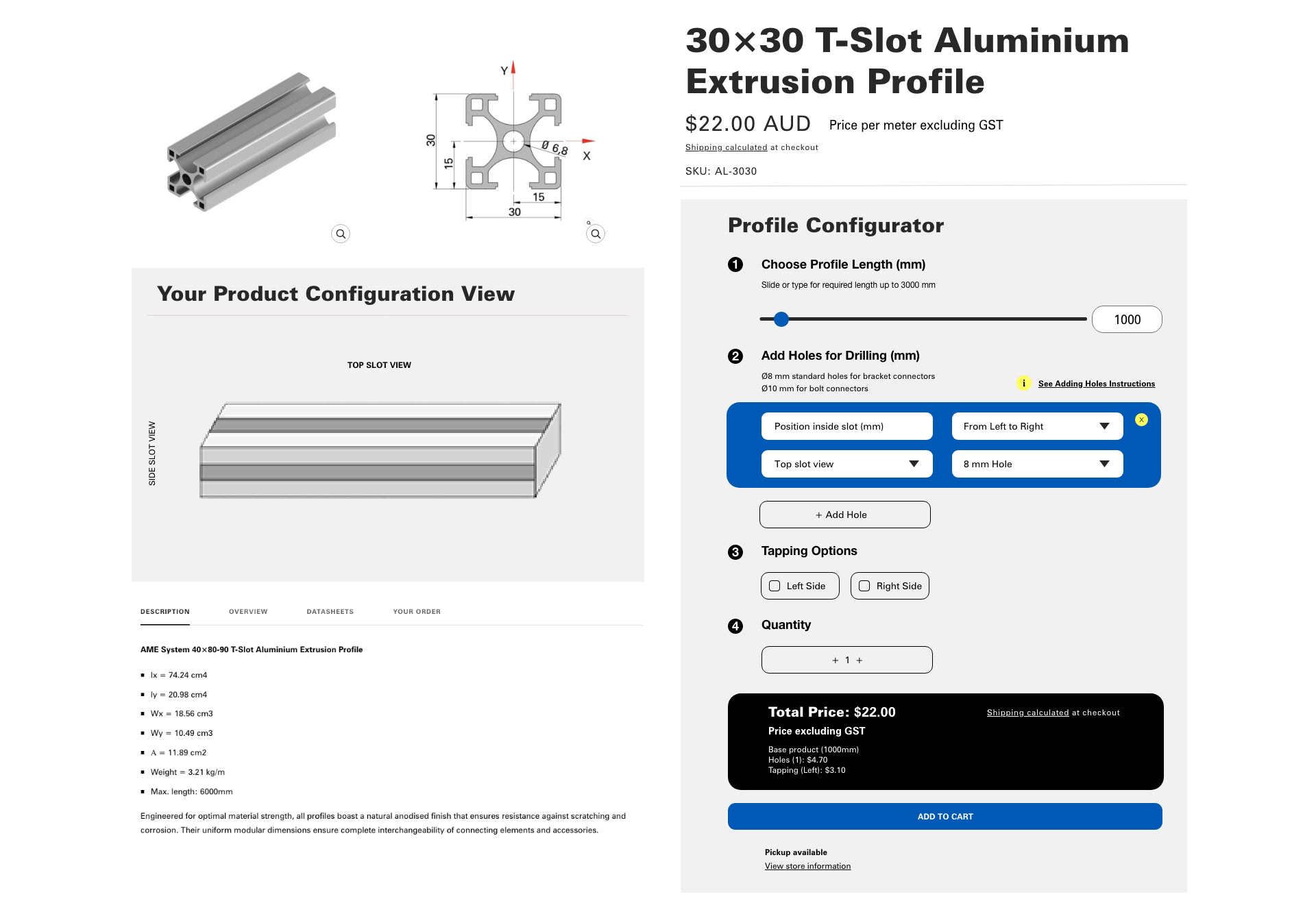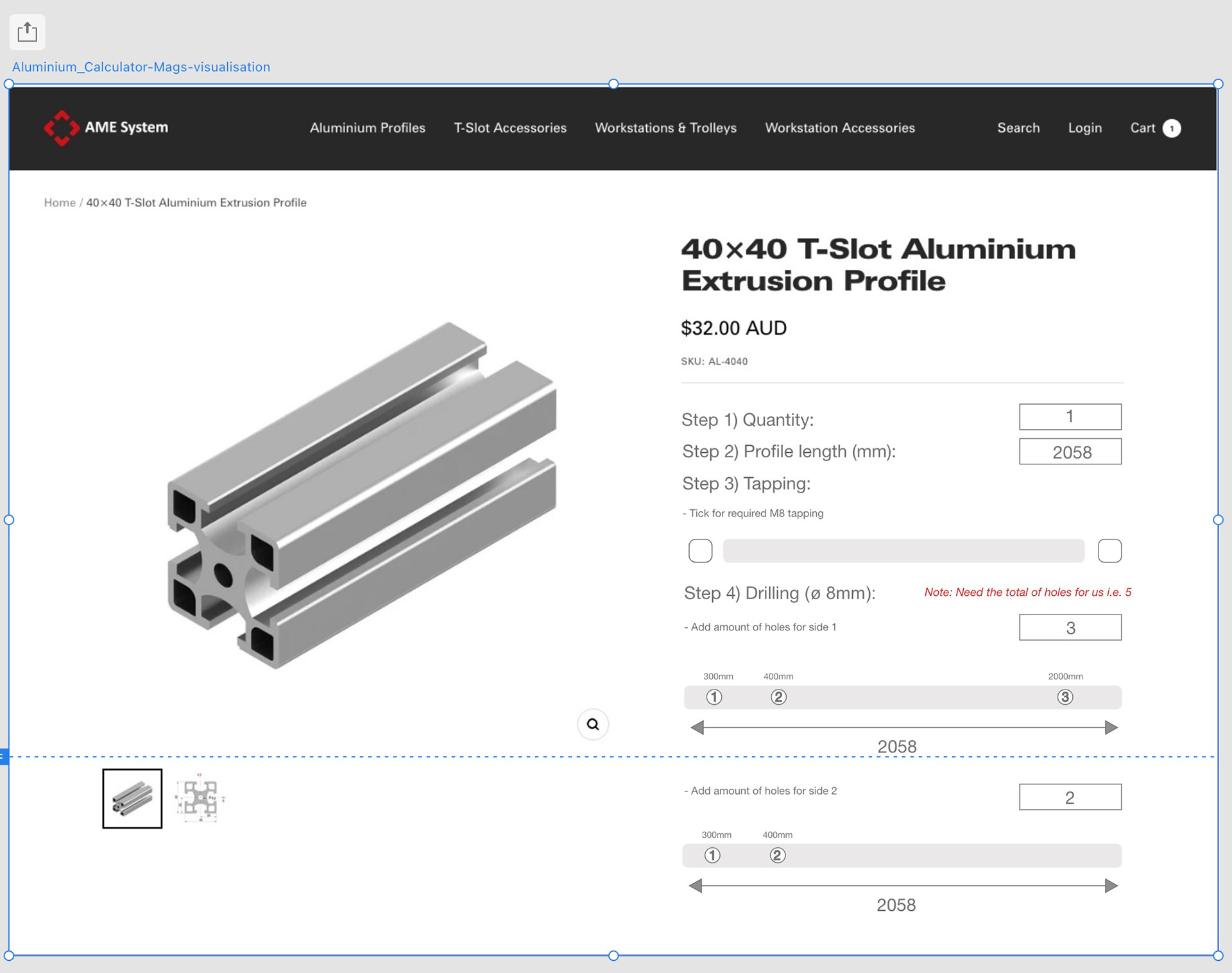 I created the brand’s online identity, wrote web content and SEO-focused product descriptions, optimised product imagery, website banners, reformatted datasheets to match branding style, and integrated specialised Shopify apps for stock management (inFLow) , advanced shipping (Sendle, NFM) , analytics, security, backups and other technical documentation. Currently working on developing a custom design calculator to help AME System sell any length of aluminium profiles.